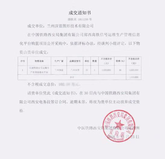 上午傳來好消息:深藍公司繼去年11月中標西安鐵路局信號運維平臺基礎設施建設項目后,又于今天上午中標西安鐵路局鄭西高鐵運維平臺項目!加之上周中標的西安、安康兩段三個車間的信息管理項目,我們已經在西安局的高鐵信號管理項目中占有了可喜的地位,也為在西安局進一步擴大項目應用奠定了良好的基礎!這是公司和項目組艱苦、細致努力的結果,也是全公司為項目推進和技術改進精誠合作、為用戶提供滿意產品和服務的結果。我們對此熱烈歡呼,熱烈祝賀!希望諸位繼續奮斗,再創佳績!